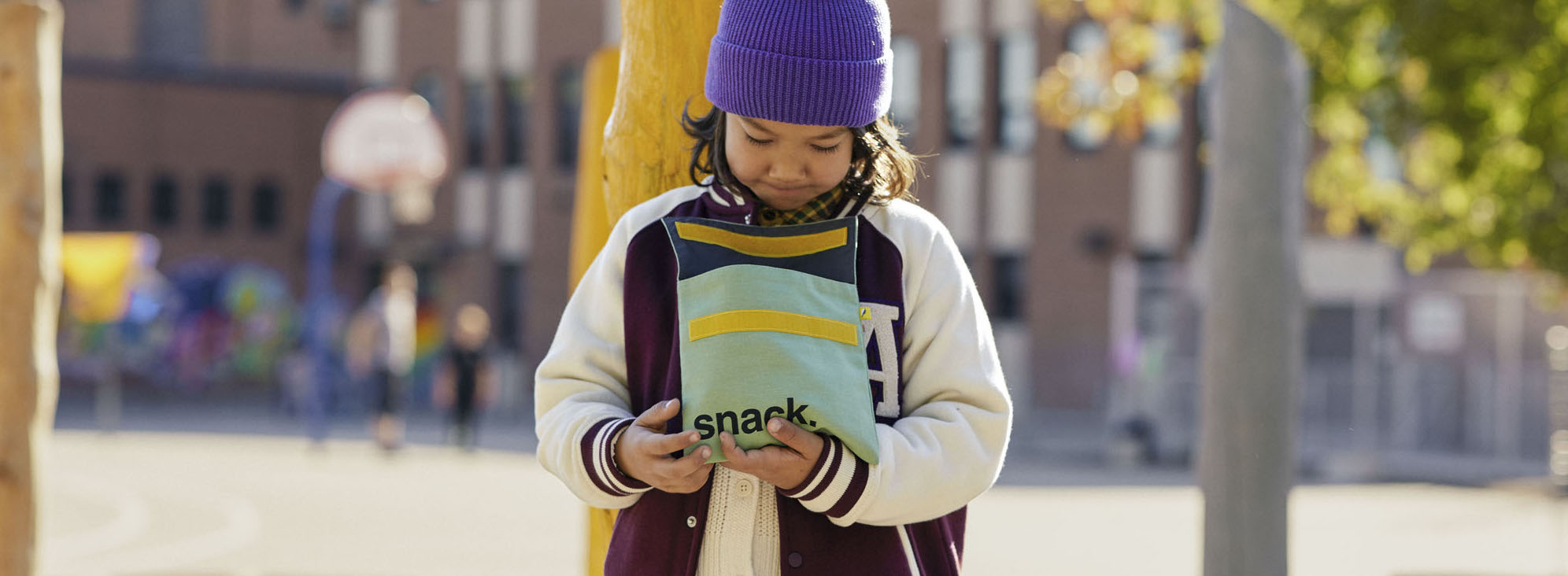 Our lunch bag and snack bag lining is a recycled polyester fabric called ‘RPET' (or rPET). RPET is a new fibre, made from 100% recycled PET bottles, like water bottles. Because it’s made from recycled PET, it does not require any petrochemical raw materials, saves natural resources, and uses less energy to manufacture.